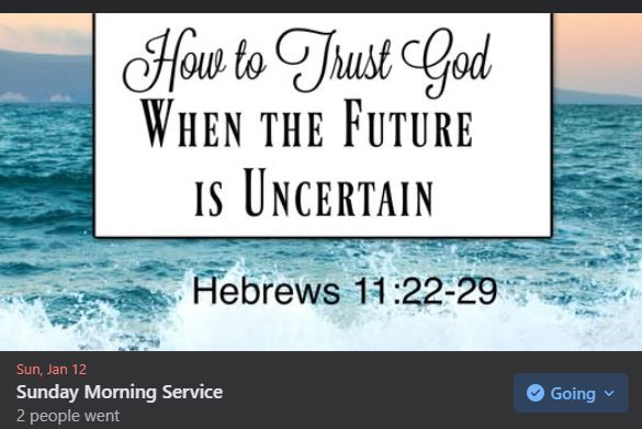 1/12/25 Sunday Service: It appears that Facebook had a save error and therefore we are unable to download this service to YouTube. The full service video is available to be viewed from this Facebook link. We should have this fixed for next weeks service. https://www.facebook.com/events/1159703528883456/permalink/1160244765495999/