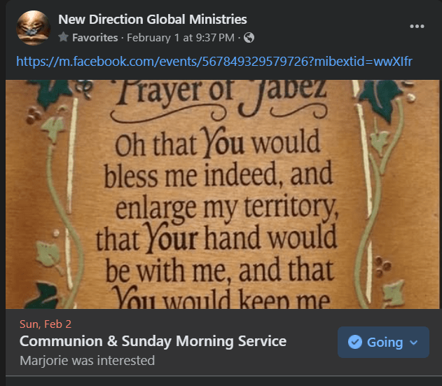 Communion/Sunday Morning Service 2/2/25: The Prayer of Jabez- It is time to move out of our comfort zones and not be content to be like everyone else. Raise above your current and past circumstances of your life and seek better by going to the Lord and asking him to grow you spiritually. Never be satisfied but always seek to advance your walk with God. https://fb.watch/xwWx3byQRA/